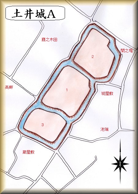 城屋敷と言う地名が残っている一帯が、土井城Aの跡である。