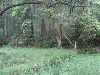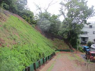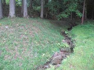 | 西側の沢。 | 土手の奥に石垣が見える。 |