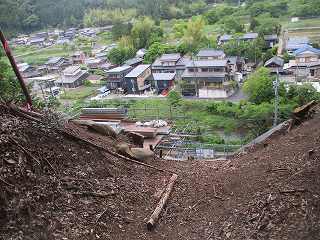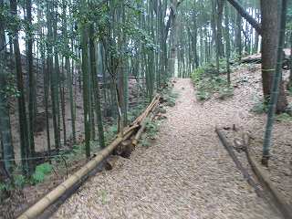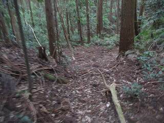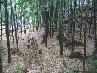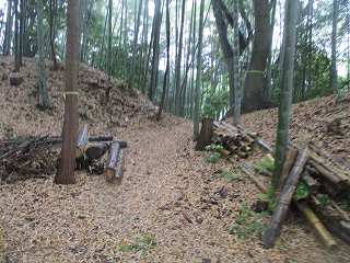 | 堀切。 | 堀切の北端部は崩落防止工事中。 |
