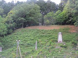 | 土塁下の段郭。 | 土塁下の城址碑。 |