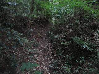 この墓地の入口付近に登城道の入口があるのだが、これがとても分かりにくい。私も最初、入口が分からなかったので、テキトーに山を登って行った。すると登城道と合流することができたのであった。
