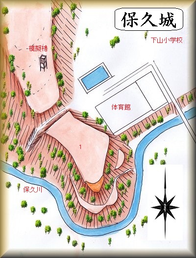 保久城は、室町時代に幕府奉行衆として当地を支配した下山氏の居城であった。