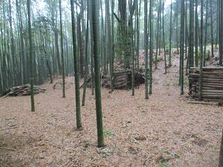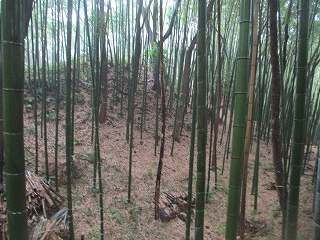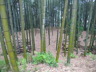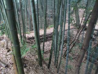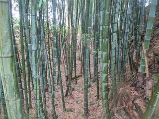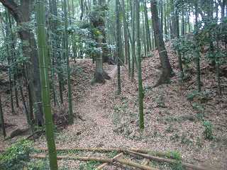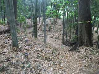 | この竹ヤブの中に堀と土塁が残されている。 | 堀。 |