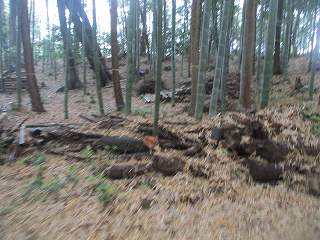 その先の北側が1郭である。といってもきちんとは削平されてはいない。周辺には腰曲輪が造成されている。全体的に加工度が高いとは言えず、臨時的築城の雰囲気の強い山城である。