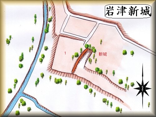 岩津新城は、岩津城の北西300mほどの所にある。市営岩津住宅など住宅地が密集している台地で、宅地開発によって遺構はほぼ失われてしまっているが、この台地に「新城」という地名が今も残る。