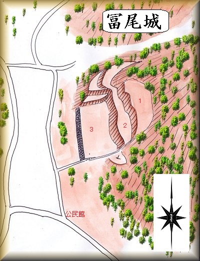 冨尾城の場所。 登城口の場所。