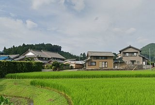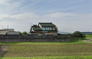 市道の交差点辺りが屋敷跡で、南北に走る道路が屋敷跡を分断しているようである。