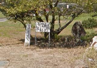 道々目記城の場所。 道路沿いの標柱の場所。
