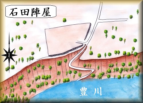 豊川の河岸段丘上の地形で、石田城の北東400mほどの位置にある。