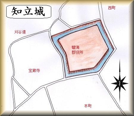 東海道と刈谷道に面した120m×100mほどの五角形の城館であった。