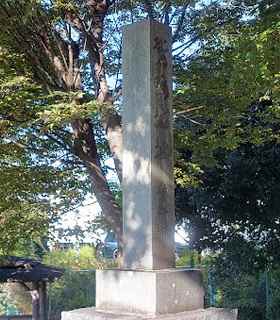 東側の道路沿いに鴛鴨城の案内表示があり、そこから南西に進んで行った木立の中に城址碑が建てられている。