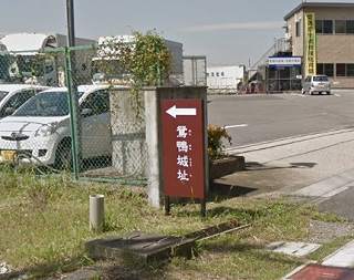 | 東側の道路沿いにある案内表示。 | 駐車場脇の木立の中に建てられている城址碑。 |