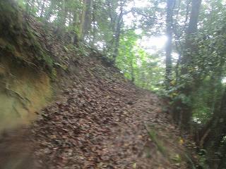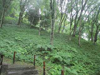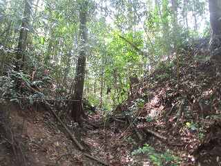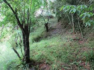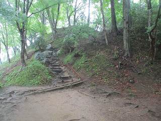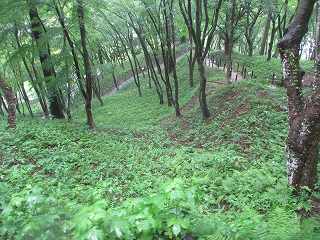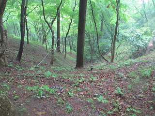 | 2郭から見る1郭城塁。 | 側面部の急斜面。 |