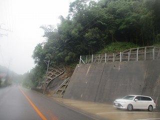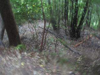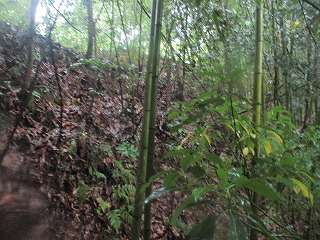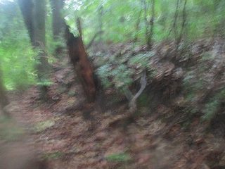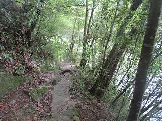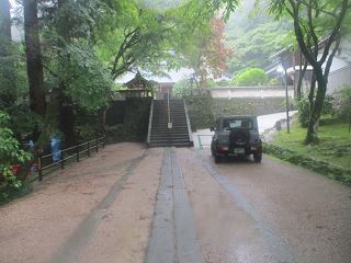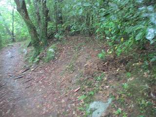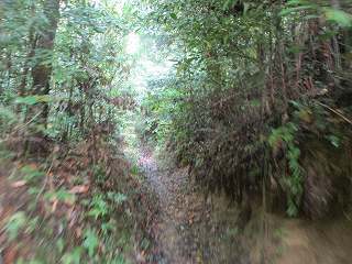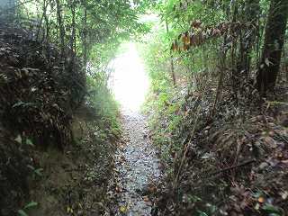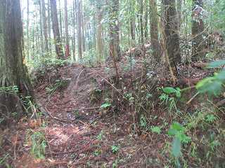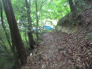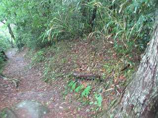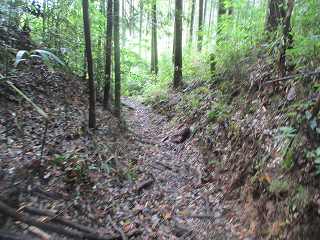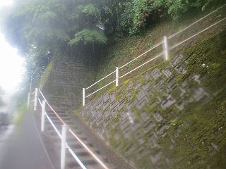 | 足助城山城。雨がひどくなってきた。 | 途中まで登ってみたが、雨ではこれ以上進めない。 |