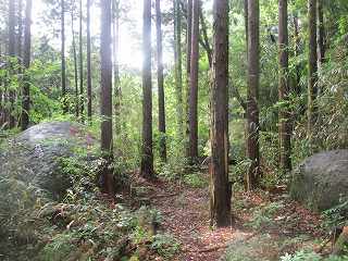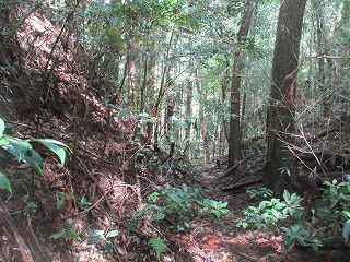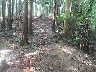 下りは香積寺方面の登城道を通って降りて行った。こちらは支尾根が少ないようで段郭群はあまり見られなかった。