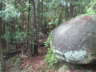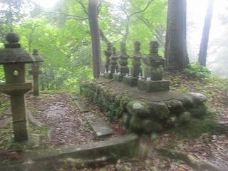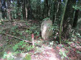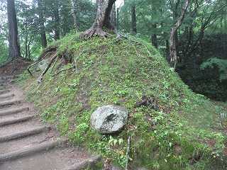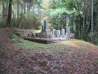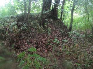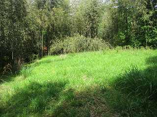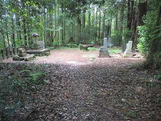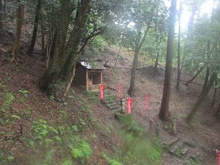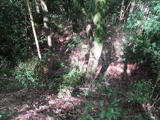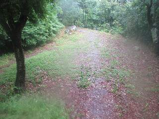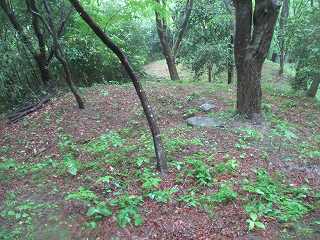 その南側に2段の帯曲輪があり、その下を通って西方に進んで行った所にも墓地がある。道はここに来るためのものである。