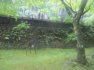 | 陣屋入口。土砂降りで霞んでいる。 | 陣屋跡内部。 |
