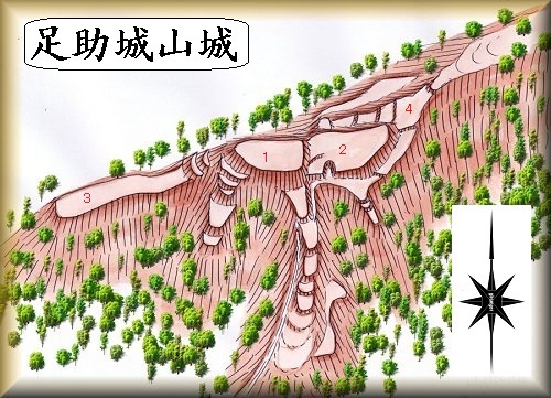 尾根上に2つの郭を置き、周囲には制する尾根に郭群を形成した山城であった。