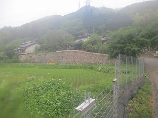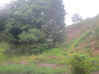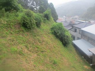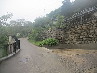 ところがこの日はあいにくの土砂降りであった。ちゃんとした登城道があれば傘を差して登城できたと思うのだが、登り口が分からず、登城できていない。周囲を回って城塁を確認できただけである。