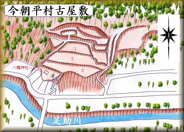 今朝平村古屋敷の歴史について詳しいことは分かっていないが、城主は原田権左衛門であったと伝えられている。