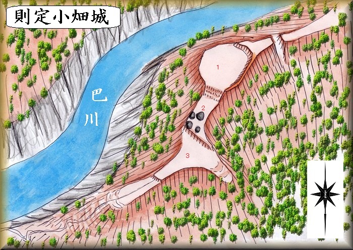小畑城のメインの郭は3つだけであるが、周囲が要害地形となっているので、なかなか攻めにくい城郭であったと思われる。