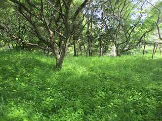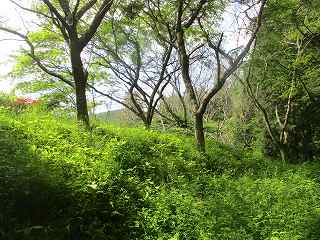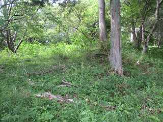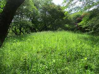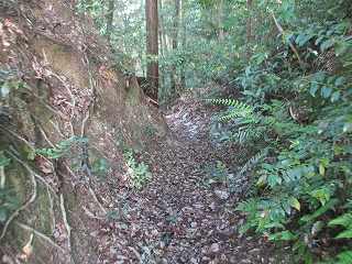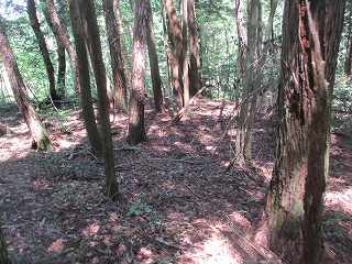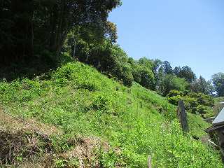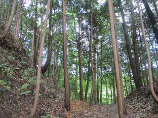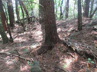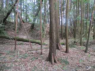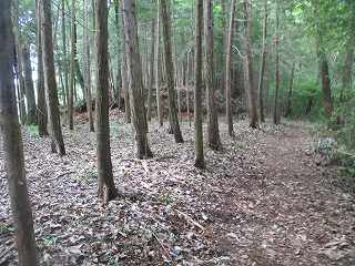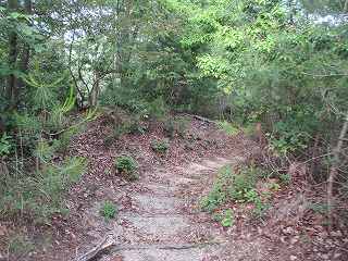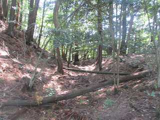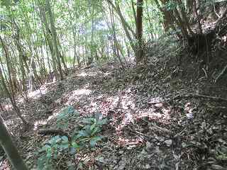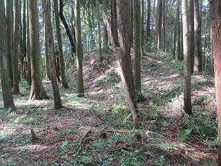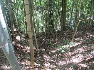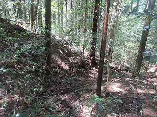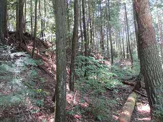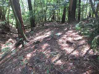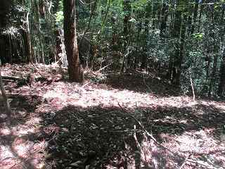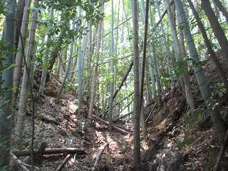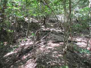 | 急峻な山のため、こんな道を登って行く。 | 腰曲輪。 |