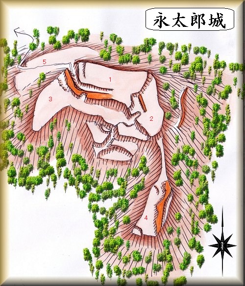 永太郎城は、これらの5つの郭によって形成された城郭である。比較的城域は広いが、よくまとまっているとは思われない構造である。