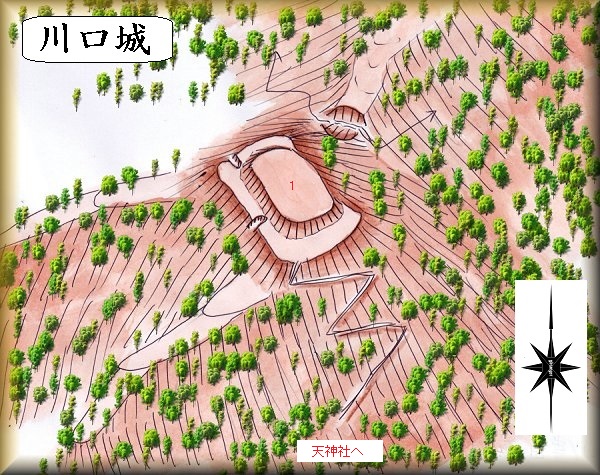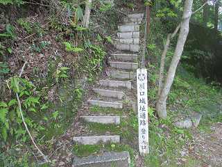 神社の境内の奥に進んで行くと、そこに川口城への登城道が付けられていた。後はそれを進んで行けば城内に到達することができる。