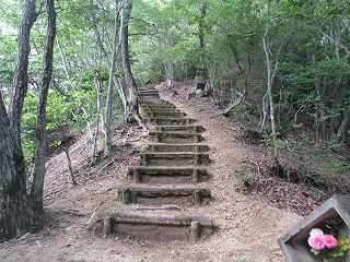 | 天徳寺から遊歩道が付けられている。 | 階段をひたすら登って行く。 |