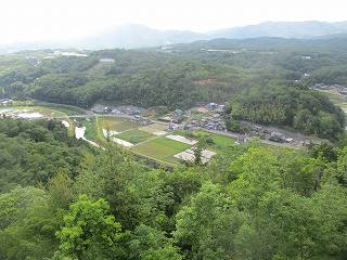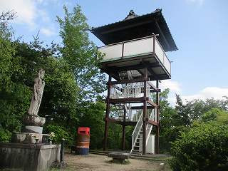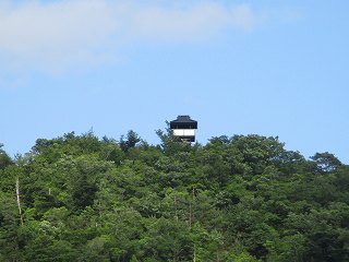 近くまで行くと、いかにも城山といった山稜の山頂部分に展望台が建てられているのが見えてくる。これが城址である。