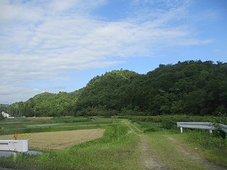 仁木城は、二木の集落の北東にそびえる比高120mほどの山稜に築かれている。城の入口部分には宮口古墳群があり、それが目印になる。