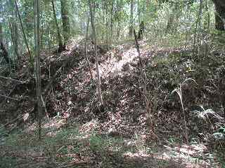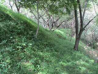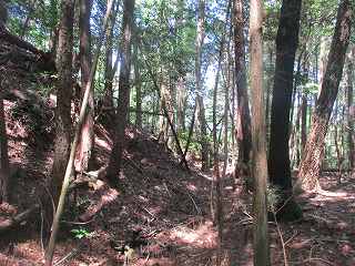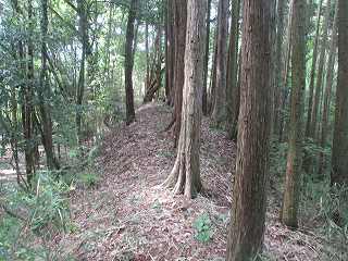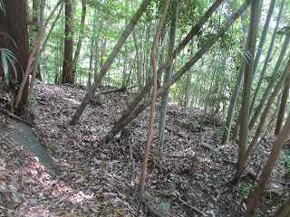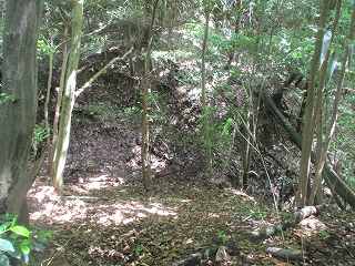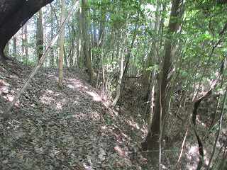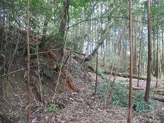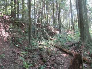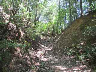 | 切通し通路。 | 尾根基部を断ち切る大堀切。 |