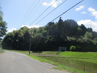 登城道がどこにあるのか分からなかったが、比高20mほどであるから、南端部付近から直登してみることにした。付近の道路には路肩に余裕があったので、車は脇に寄せて停めさせていただいた。
