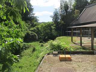 | 西側は民家が密集している。 | 東側は畑の柵が張り巡らされている。 |