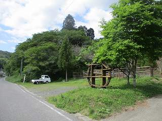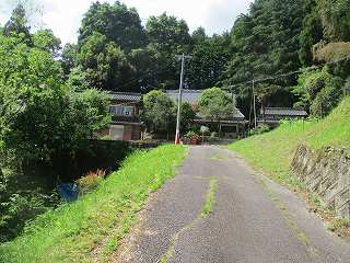 集落内部の道は狭く、途中に車を停めて置ける場所はないが、地元の方に伺ったところ「その先の古墳群の入口のところまで車で行ける」とのことであった。実際、この入口のところ以外には車を停められそうなところはなかった。そこまで車で進んで行くのがよいだろう。