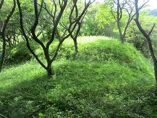 | 1郭背後の土塁。高さ10m近くある。 | 西側の城塁。 |