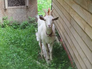 | 城の下で飼われていたヤギ。私が城を回っている間、ずっと「メーメー」鳴いていた。かまってほしいのだろう。 | |