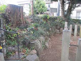 虎口から南側にかけても堀が掘られているのだが、こちらは堀際に垣根があって、堀の形状を確認するのが難しくなっている。