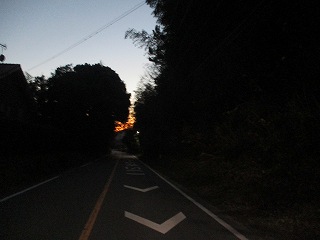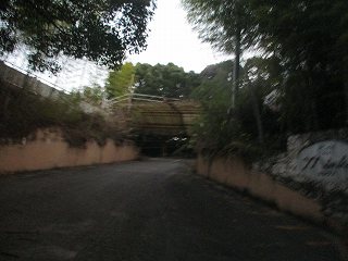 | 1郭を削っている県道。すっかり暗くなってしまった。 | 堀切。 |