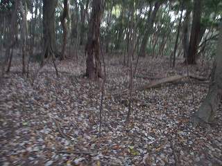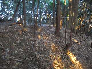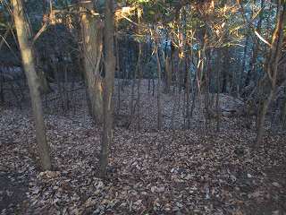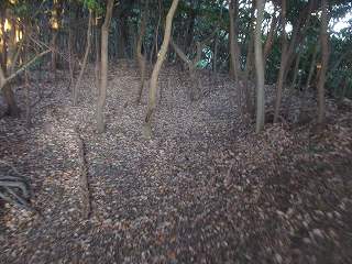 台地は北側から伸びてきたもので、城の北側に堀切を入れて区画している。この堀切の写真を撮ったのだが、暗くなってしまっていたため、ほとんど分からない写真になってしまった。肉眼ではちゃんと堀切に見えていたのだが・・・・。
