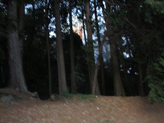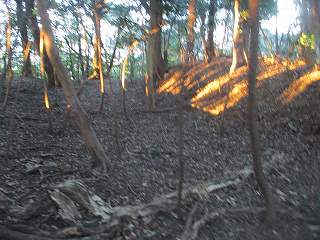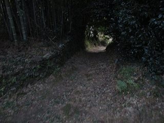 | 北側の入口。 | 大堀切。すっかり暗くなってしまって、ちゃんと写らない。 |
