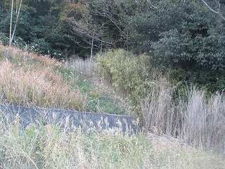 | 南側の入口。右手のヤブの中が堀。 | 南側の腰曲輪。 |