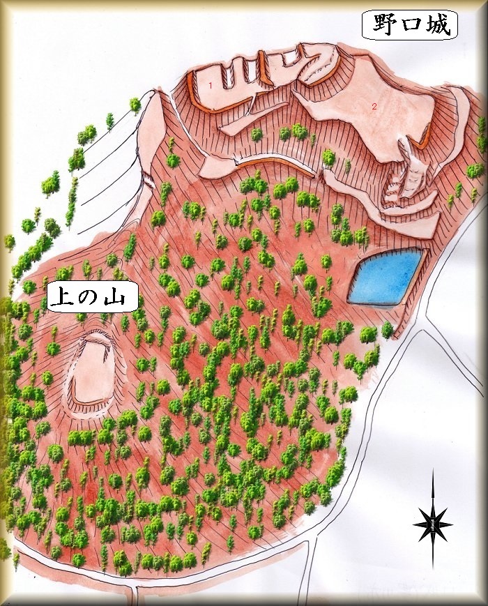 | 野口城は、文明年間に野口主水によって築かれたと言われている。 | |