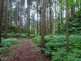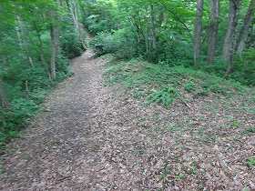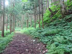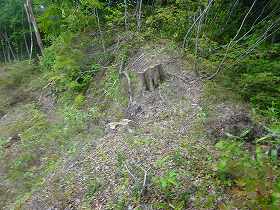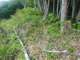 なお、この鞍部から北西側斜面に続いている道があり、こちら側からもアクセスできるようになっているようだ。ただし、登城口がどこであるのかは確認していない。
