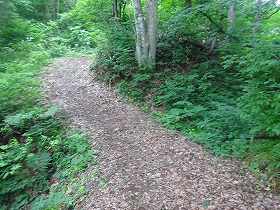 私は途中までこの作業林道を進んで行ったのだが、途中でスタックしてしまいそうになったため、あきらめてバックして引き返し、途中の路肩が広くなっているところに車を寄せて、後は歩いて行くことにした。橋から登り口まで距離があるので、けっこう歩かされることになる。