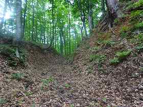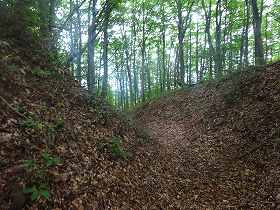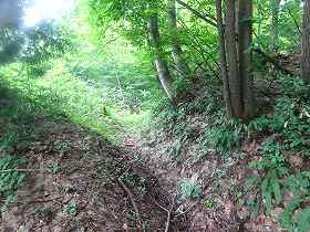 | 横堀外側の畝状竪堀。 | 1郭の横堀。 |