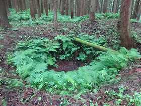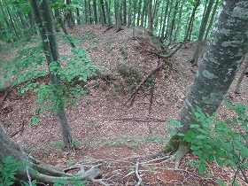 | 外側の土塁の内部にも窪みがあり、二重構造になっている。 | 南側の尾根続きの土塁。 |