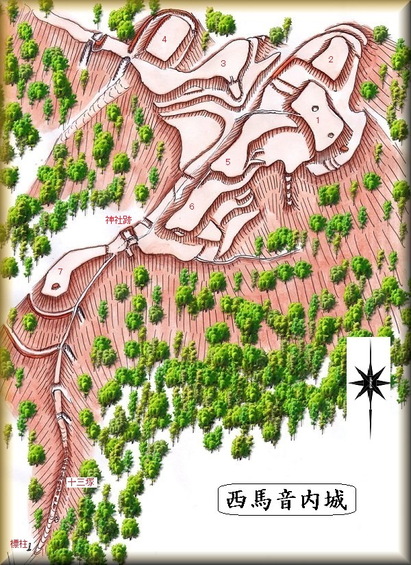 | 中世の羽後を二分すると言ってもいい勢力を有していたのは、県北の安東氏と県南の小野寺氏であった。西馬音内城は、この小野寺氏の有力支城であった。以下、『城郭体系』の記述をまとめると以下のようになる。 鎌倉時代初期に雄勝郡に入部した小野寺経道は、稲庭城を築いてその本拠地とした。そして、次男の道直を西馬音内に、3男道定を湯沢に置き、それぞれ城を築かせて、領域の境目の守りとした。 戦国期になると、西馬音内の南方には、真室川の鮭延氏、山形の最上氏が勢力拡大を目指しており、西方には由利十二頭がいて、それぞれと対立していくことになる。 天正年間、小野寺氏は、最上氏・鮭延氏の攻撃を受け、何度も攻防戦を繰り広げている。 天正14年(1586)、鮭延典膳が最上氏に対して反逆を起こした。それをチャンスととらえた横手城の小野寺義道は軍勢を催して、鮭延氏の領内に進攻した。そして有屋峠で最上勢との決戦となったが、結局勝敗はつかなかった。 天正20年(1593)、由利十二頭のうち、西馬音内小野寺氏と友好関係にあった矢島城の大井氏が、仁賀保勢の攻撃を受けて城を奪われた。大井氏は、城を脱出して西馬音内に逃げ込んできた。ところがこのことに不信感を抱いた横手の小野寺義道は、軍勢を指し向けて来た。西馬音内小野寺茂道は、これを迎え撃とうとしたのだが、大井満安が自害することで、合戦は回避された。これによって西馬音内小野寺氏は横手の本家とは距離を置くようになっていった。 文禄4年(1595)、秀吉によって雄勝郡の領有を認められた最上義光は、実効支配を目指して雄勝郡に攻め込んできた。これによって湯沢城は落城し、最上氏の制圧下に置かれたが、西馬音内小野寺氏は、関係の悪化していた横手の本家を裏切って、最上勢に加担したため、その後も所領を安堵されている。 慶長6年(1601)、西軍に加担して最上勢に先行した小野寺氏は、家康によって改易となって、石見国に配流されてしまう。西馬音内城も、この時は最上勢に対して抵抗したが、結局は落城し、廃城となっていったと考えられる。 |