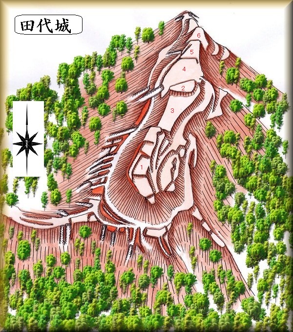 そんなわけで、田代城は、うわさで聞いていた通りに、非常に見どころのある山城なのであった。ちゃんとした道がないため、ここまでアクセスするのがちょいと面倒くさいのだが、頑張って1郭背後まで訪れてみれば、この遺構のすばらしさに感動すること間違いなし! ということでお勧めの城郭なのであった。