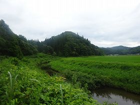 というわけで、城山の位置はすぐに分かるのであるが、周囲を石沢川が流れているために、直接取り付くことができない。城に行くためには、北側の橋を渡って、そこから延々、城のある南側まで歩いて行く必要がある。